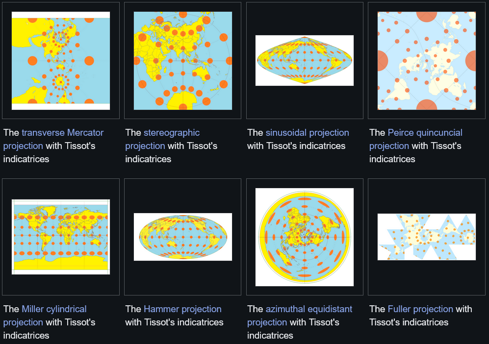 One such systems is the Mercator projection, which is the rectangular world map many of us have come to know. In this projection, every small neighborhood on the map looks geometrically correct relative to its immediate surroundings. But globally, things go wrong. Greenland appears roughly the size of Africa, even though Africa is about 14 times larger (as an aside, check out TheTrueSizeOf to play around with this concept). The further you get from the equator, the more areas get stretched. You can see how this kind of thing can lead to misconceptions about our world, and lead to placing more relative importance on things that appear large on the map.