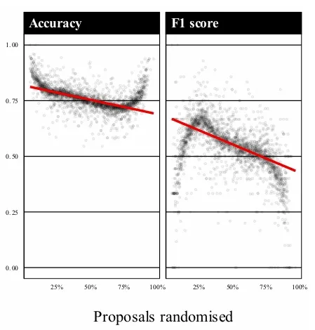 What they find on the F1 score side is that more randomization does mean lower F1 scores, as you would expect. But the decline turns out to be gradual, which is a good thing. Peer review reliability is already lower than most people assume. A 2018 PNAS study by Pier and colleagues had the same NIH grant proposals reviewed independently by two entirely separate panels and found the agreement between them was quite low. If the baseline instrument is already that noisy, the accuracy cost of randomizing the borderline decisions turns out to be modest, because there was not much reliable signal there to begin with.